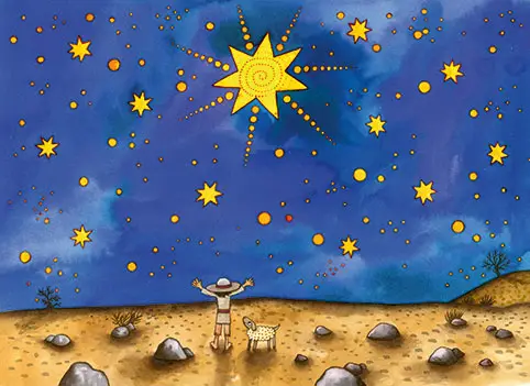 Wohin ihn sein Weg führt? Durch Wüsten und Täler, durch Dor­nengestrüpp und über Wolken­steine. Doch ganz am Ende find­et Effa – gestärkt von einem Schluck Wass­er des Lebens – einen noch viel größeren Schatz, als er es sich jemals hätte erträu­men kön­nen. Der Stern weist ihm den Weg. Der Stern aller Sterne. Der Wei­h­nachtsstern.