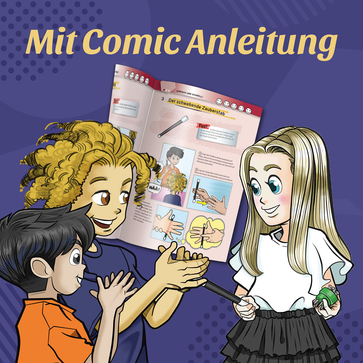 Eine anschaulich bebilderte Anleitung führt Schritt für Schritt durch die Kunststücke und liefert Tipps für eine gelungene Zaubershow – angefangen beim richtigen Präsentieren bis hin zur wichtigen Regel, niemals die Geheimnisse der Tricks zu verraten.