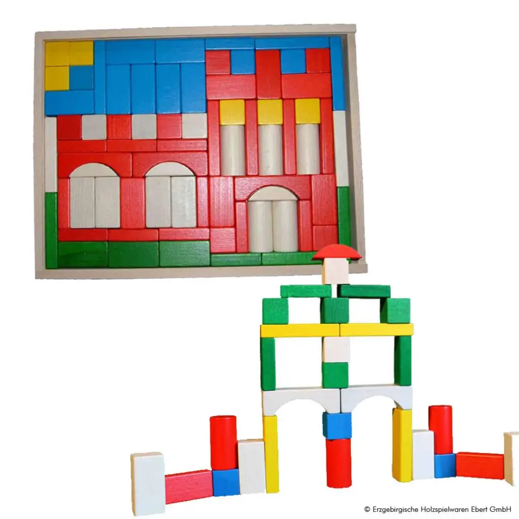 Das Bauen mit Bausteinen ist ein nicht zu unterschätzender Bestandteil in der Frühförderung von Kindern. Bauen und Konstruieren vermittelt räumliches Denken, das Kennenlernen von wichtigen Prinzipien wie Ursache und Wirkung und vieles mehr. Haptisch ist das Fühlen des Rohstoffs Holz eine wichtige Erfahrung und einfach ein Genuss.