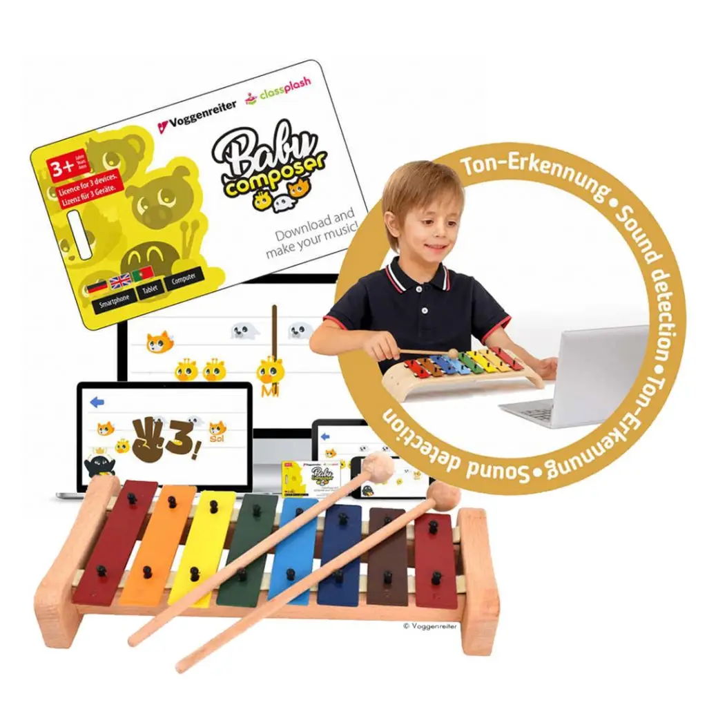 Ein Set mit Glockenspiel und Baby Composer App für das Alter 3 bis 8 Jahre!
