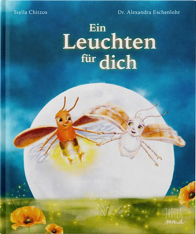 Ein Nacht­fal­ter, der Angst im Dunkeln hat? Ja, das gibt es wirk­lich. Dieses Buch erzählt vom kleinen Kasimir, der sich nicht mehr aus seinem Baum­loch traut. Zum Glück begeg­net ihm der liebenswerte Leuchtkäfer Fred­er­ick, der ihm hil­ft, seine Äng­ste zu über­winden.