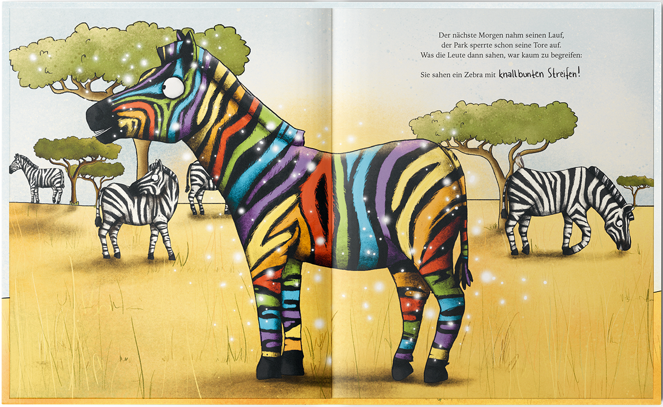 Einst lebte ein Zebra im Reservat, das anders war als der Rest seiner Art. Nun fragst du dich wahrscheinlich: Wieso? Es hatte keine Streifen – weder am Bauch noch am Po!