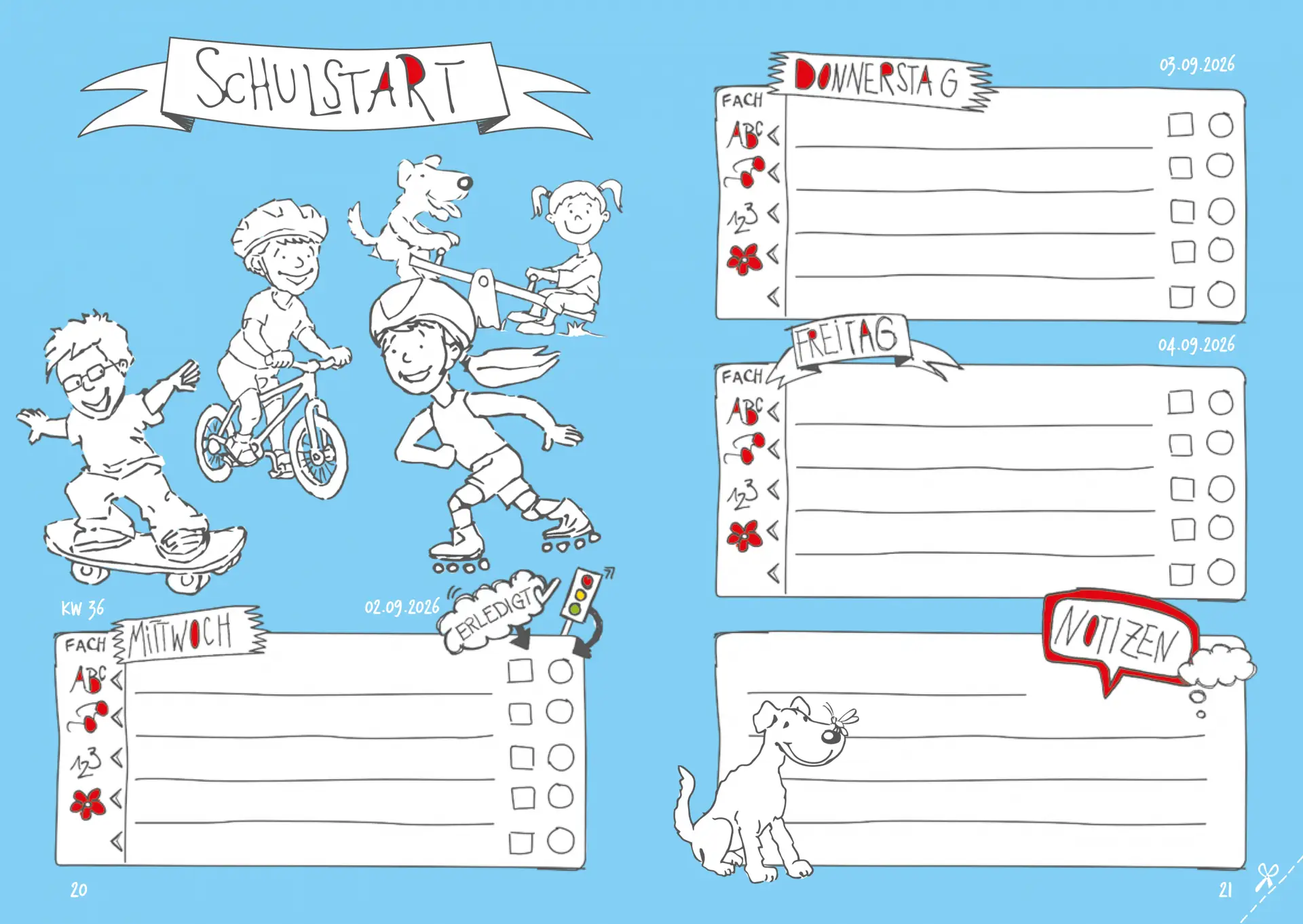Der Schuljahresplaner begleitet Kinder durch das gesamte Schuljahr und unterstützt Schule, Elternhaus und Schülerinnen und Schüler im Alltag.